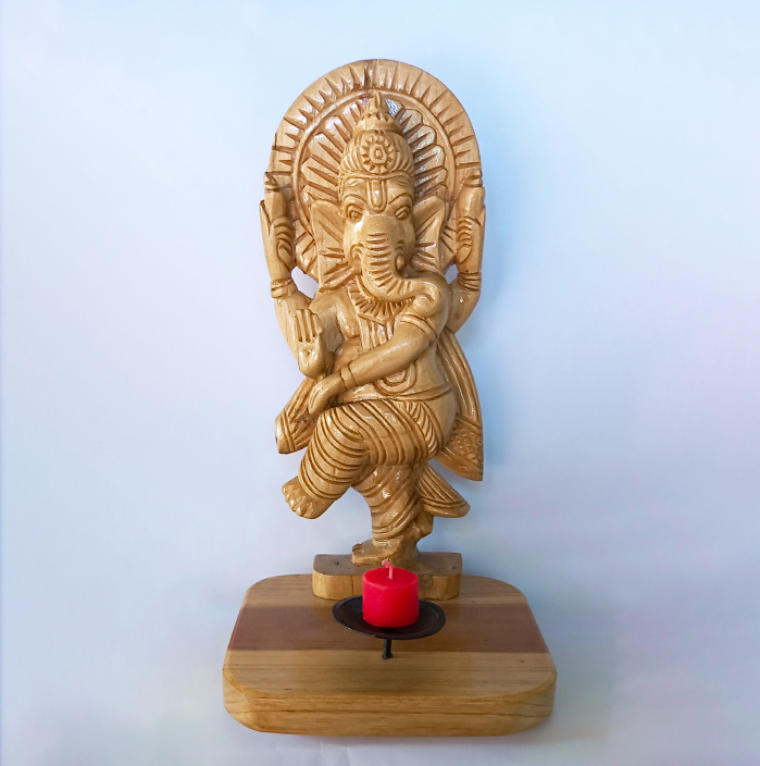 Handcrafted wooden lampshade with Kotpad fabric shade on top