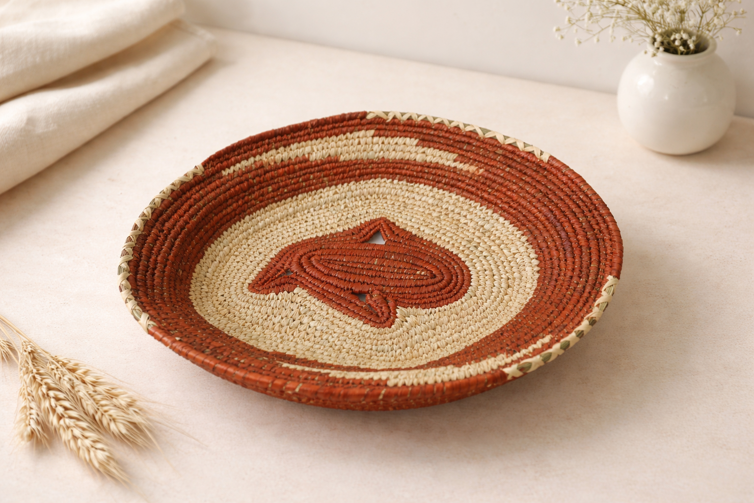 A natural grass wall plate that adds rustic elegance and organic warmth to your living room decor. Width - 14…