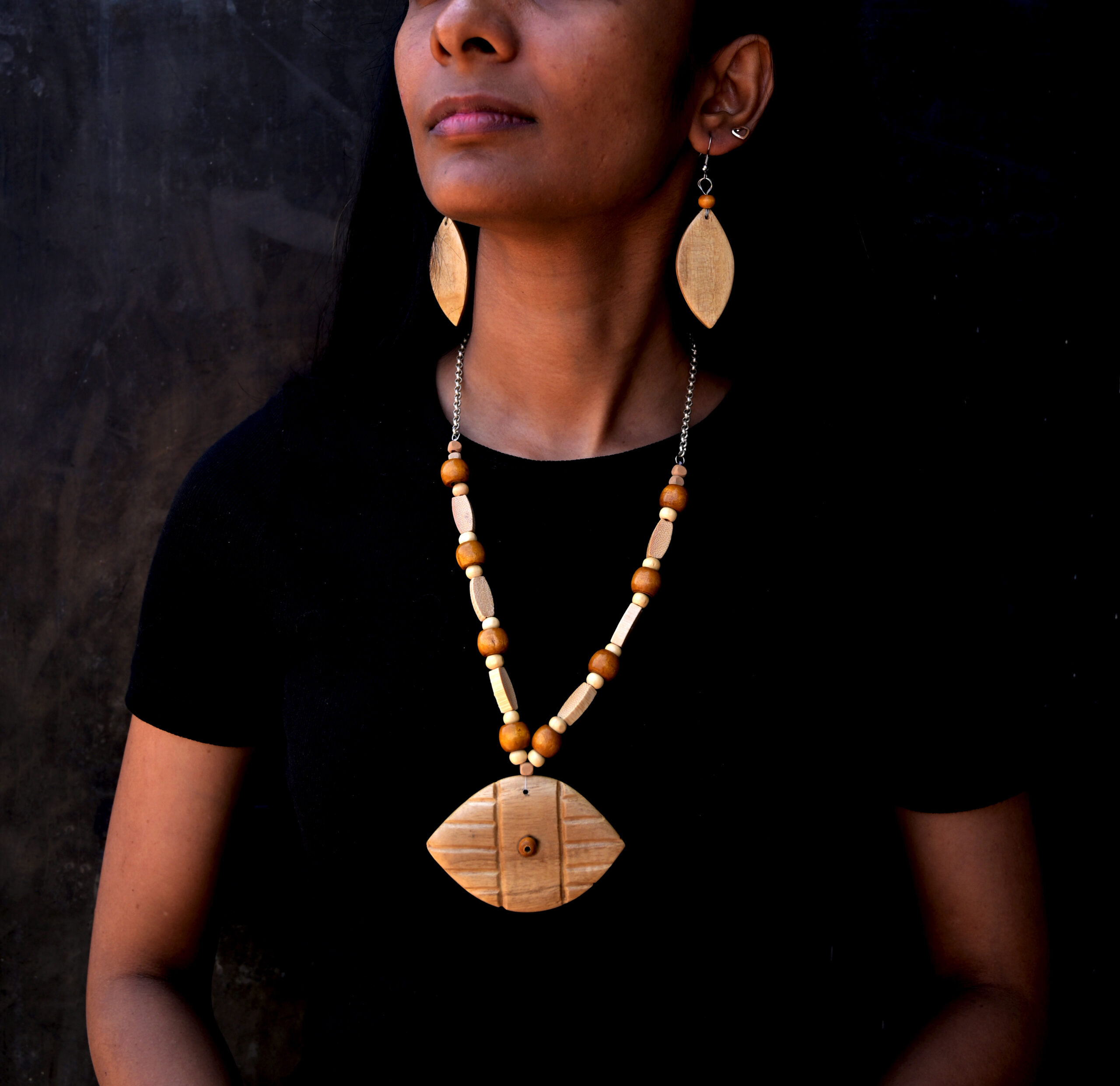Handcrafted wooden lampshade with Kotpad fabric shade on top